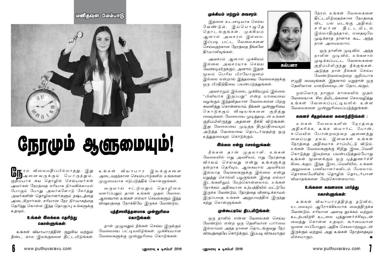 "Kalpana is a strong and confident personality in nature. Since from college life, she is always interested in doing new things and having the nature of helping others which is the unique quality"