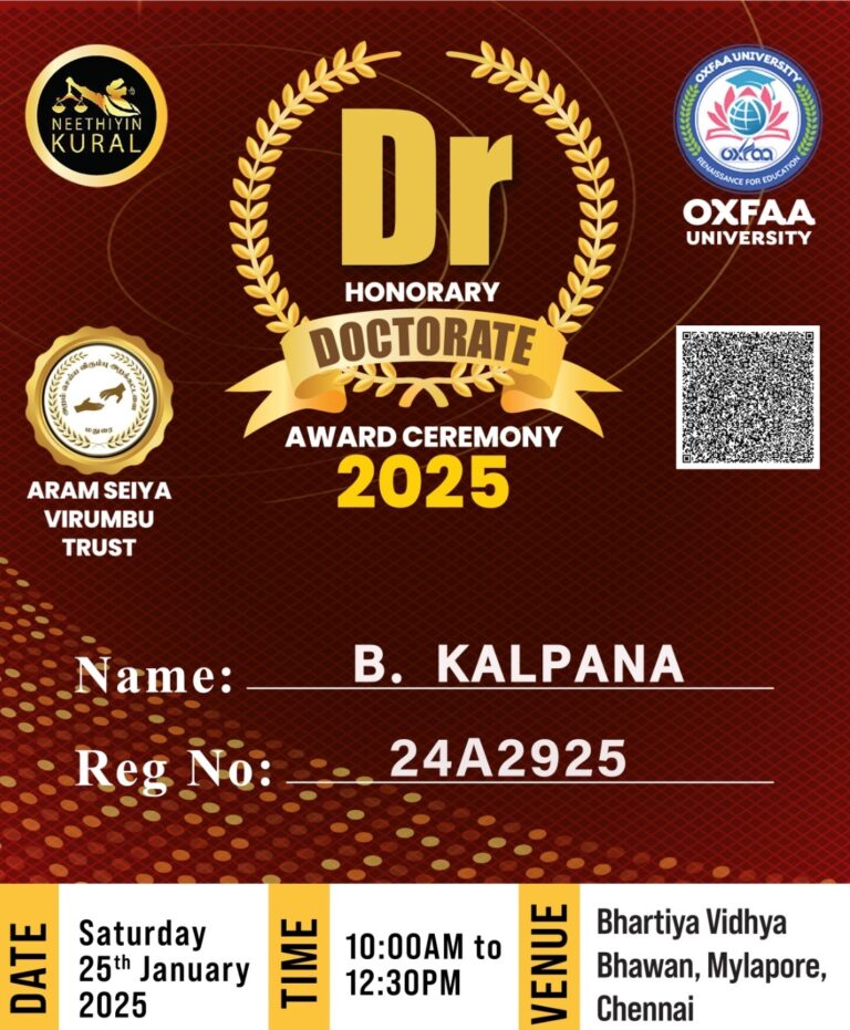 Received Star Golden Award from honorable chief judge Haridoss & NIC Academy for teaching 25-50 children free of cost who’s annual income is <50,000 INR – BEST ENTREPRENEUR AWARD OF THE YEAR 2021 – 2022